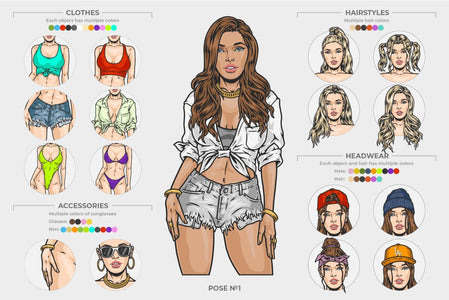 This creator is based on six detailed female poses built with layered components and interchangeable elements. Each pose is available in both full-color and black-and-white versions, allowing flexible use across different visual styles and outputs.