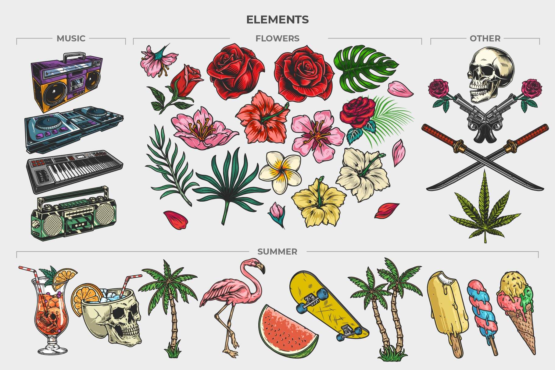 – Bonus illustration elements for design compositions