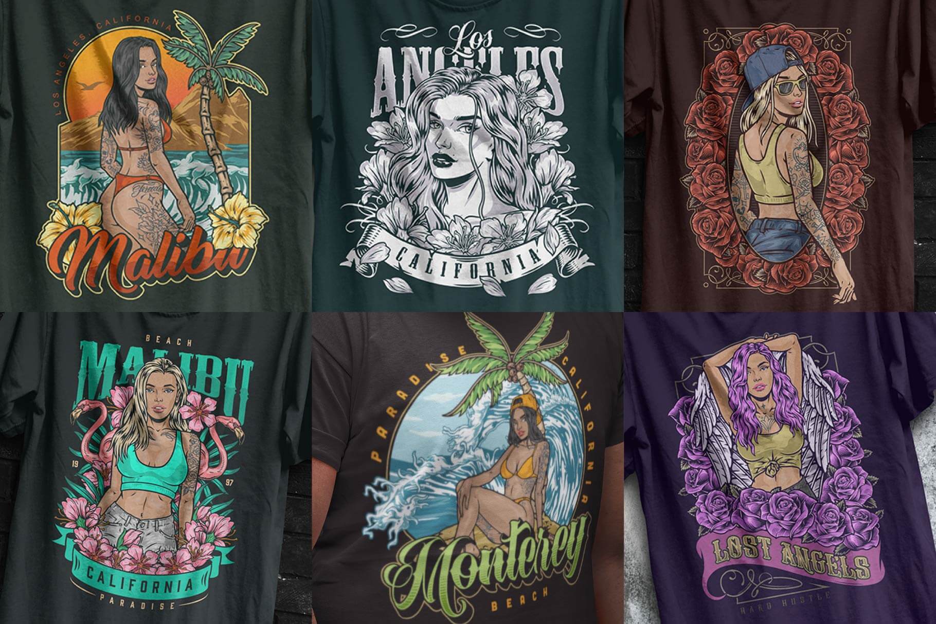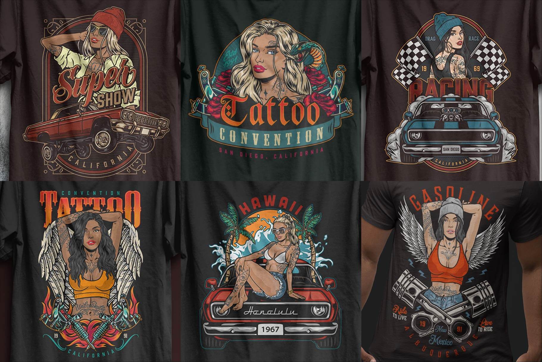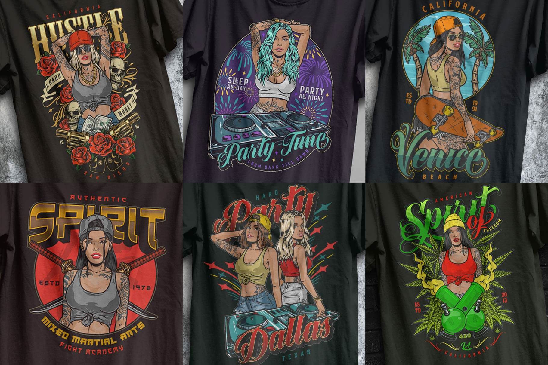 The illustration style combines modern fashion aesthetics, tattoo-inspired details, and bold outlines. Characters are expressive and stylized, suitable for branding, apparel, posters, and digital design systems.